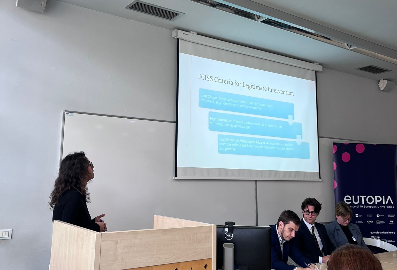 The student conference was an opportunity for students to practice research competencies and skills in the field of IR and present their written research work at a mock academic conference. The conference included several thematic sections related to International Relations. IRMO’s Research Assistant participated in the panel “International peace and security” and presented her research titled “Is Liberal Interventionism waning? R2P and the case of Libya”. The panel was chaired by Assoc. Prof. Dr. Ljupcho Stojkovski of the University of Cyril and Methodius Skopje and Assoc. Prof. Dr. Marko Lovec of the University of Ljubljana.