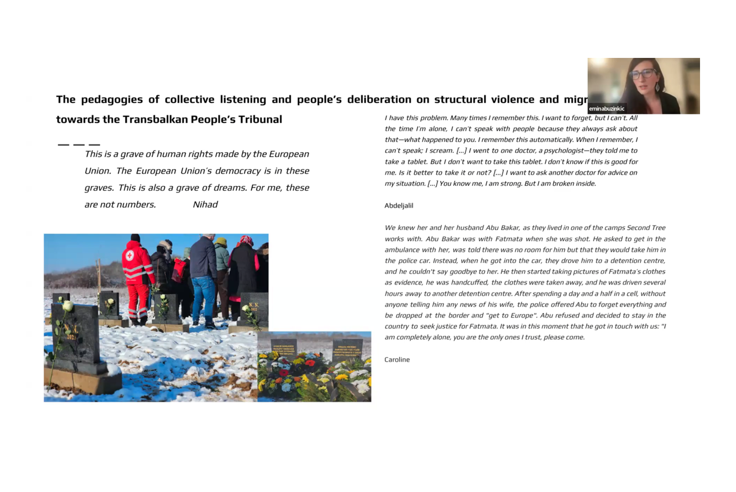 The Interdisciplinary Center for the Study of Global Change of the University of Minnesota hosted Emina Bužinkić, PhD, for a presentation on April 4th titled Feminist Accountability in Migration Justice. The presentation was based on her recent research into the ethics and methodologies of feminist accountability in justice-seeking processes, with a focus on Women’s Court’s in post-Yugoslav spaces. Her research was supported by the Ecumenical Women’s Initiative.