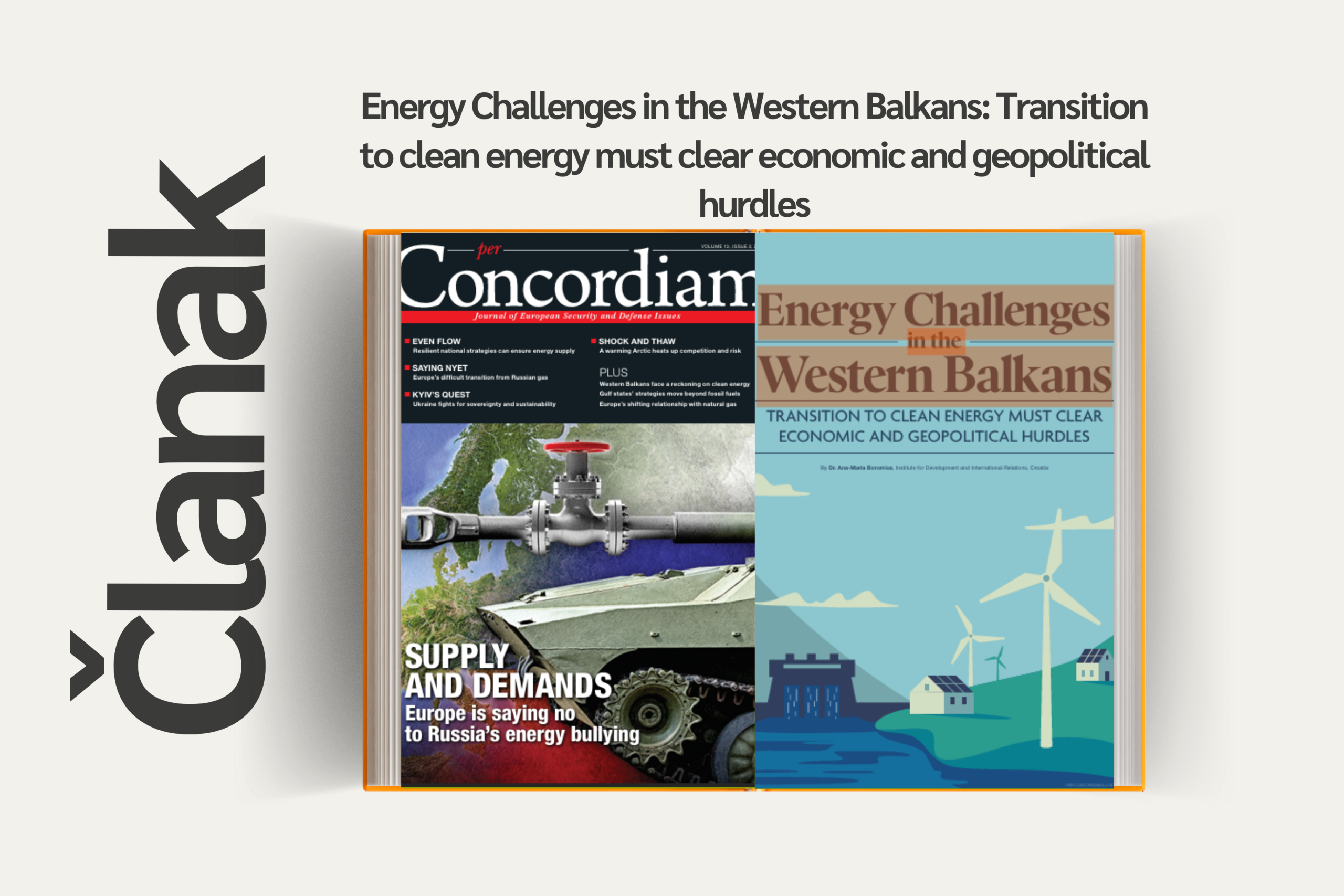U časopisu za europsku sigurnost i pitanja obrane „per Concordiam“ objavljen je članak predstojnice Odjela za međunarodne gospodarske i političke odnose dr. sc. Ana-Marije Boromisa pod nazivom „Energy Challenges in the Western Balkans: Transition to clean energy must clear economic and geopolitical hurdles”.