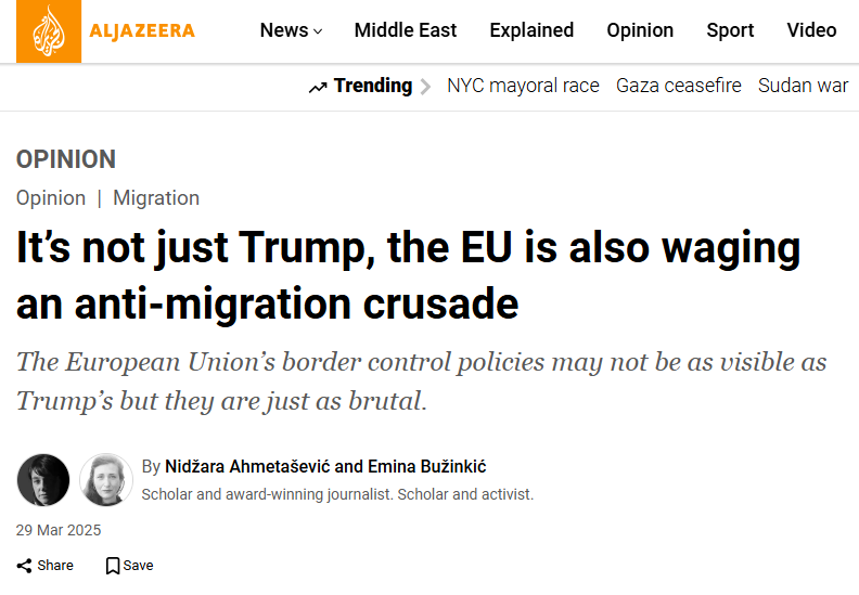 Dr. sc. Emina Bužinkić koautorica je autorskog teksta objavljenog na portalu Al Jazeera English naslova “It’s not just Trump, the EU is also waging an anti-migration crusade” (29. ožujka 2025.). U suradnji s Nidžarom Ahmetašević, članak kritički razmatra aktualne migracijske politike i politike azila Europske unije s posebnim naglaskom na njihovu restriktivnu narav i strategije eksternalizacije.